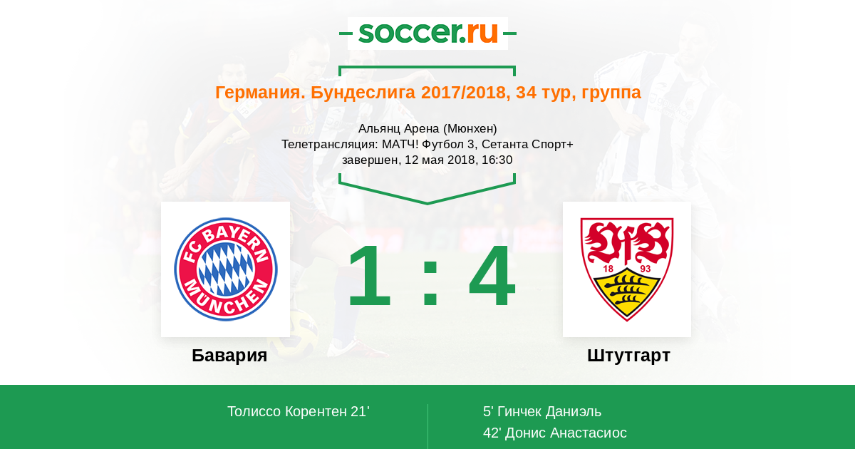 Потрясающий матч получился в Мюнхене! "Бавария" не смогла завершить чемпионат викторией на домашней арене. "Штутгарт" же заработал важнейшие три очка и поднялся на седьмое место в таблице. Получается, что в случае победы мюнхенцев в финале Кубка Германии подопечные Тайфуна Коркута отправятся в Лигу Европы. Вот такие повороты судьбы в Бундеслиге. До новых встреч, друзья!