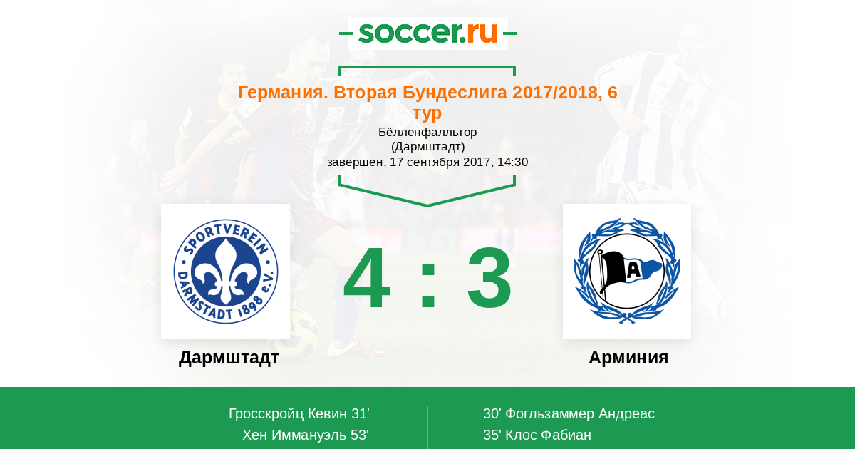 Дармштадт - Арминия: обзор матча 17 сентября 2017