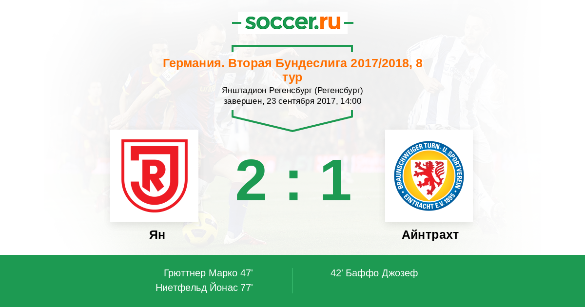 Ян - Айнтрахт: обзор матча 23 сентября 2017