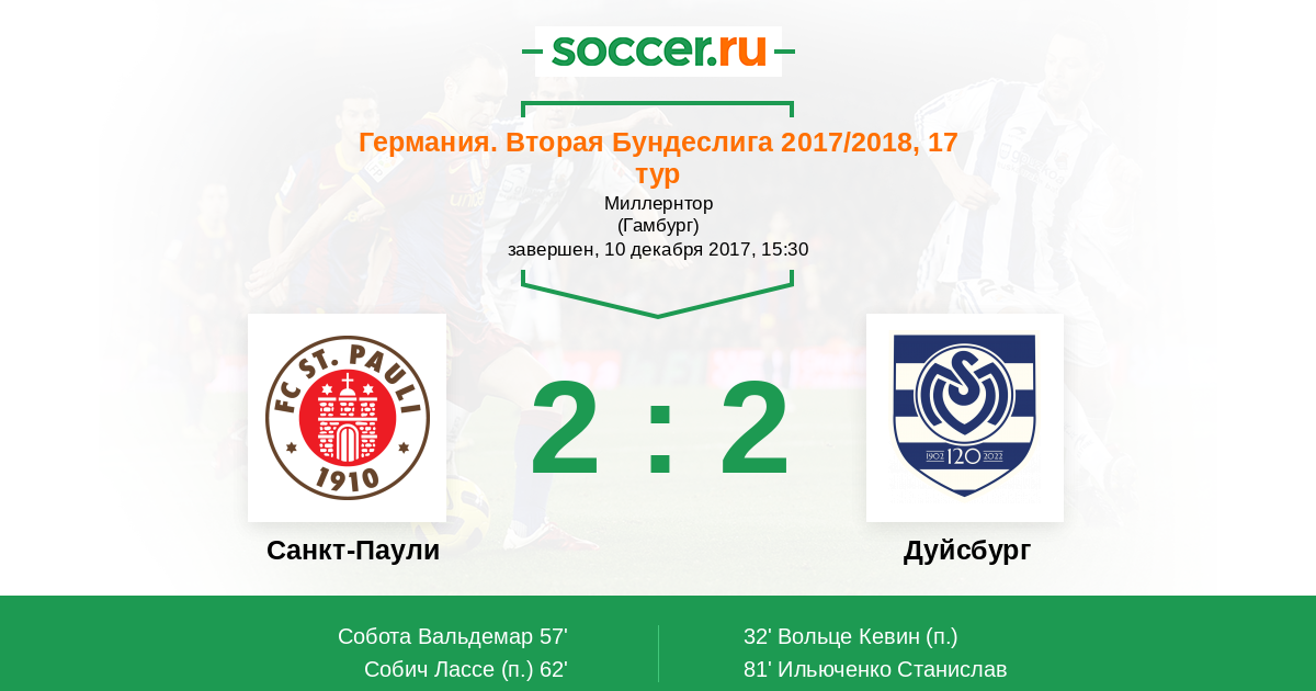 Санкт-Паули - Дуйсбург: обзор матча 10 декабря 2017