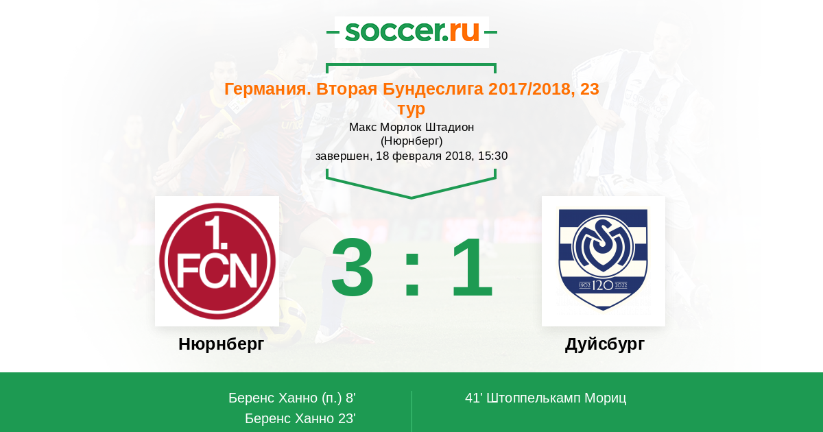 Нюрнберг - Дуйсбург: обзор матча 18 февраля 2018