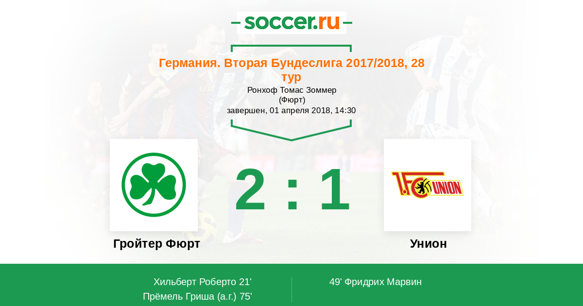 Гройтер Фюрт - Унион: обзор матча 1 апреля 2018