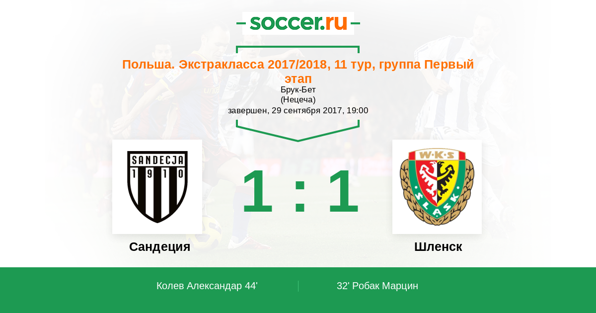 Сандеция - Шленск: обзор матча 29 сентября 2017