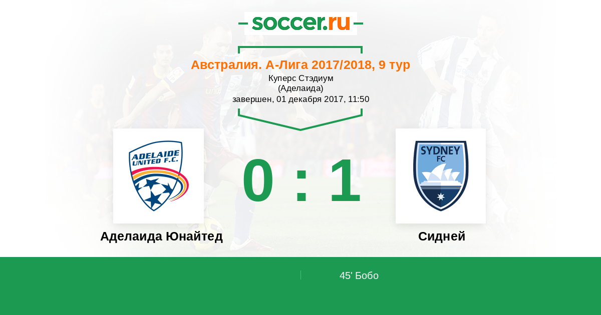 Аделаида Юнайтед - Сидней: обзор матча 1 декабря 2017