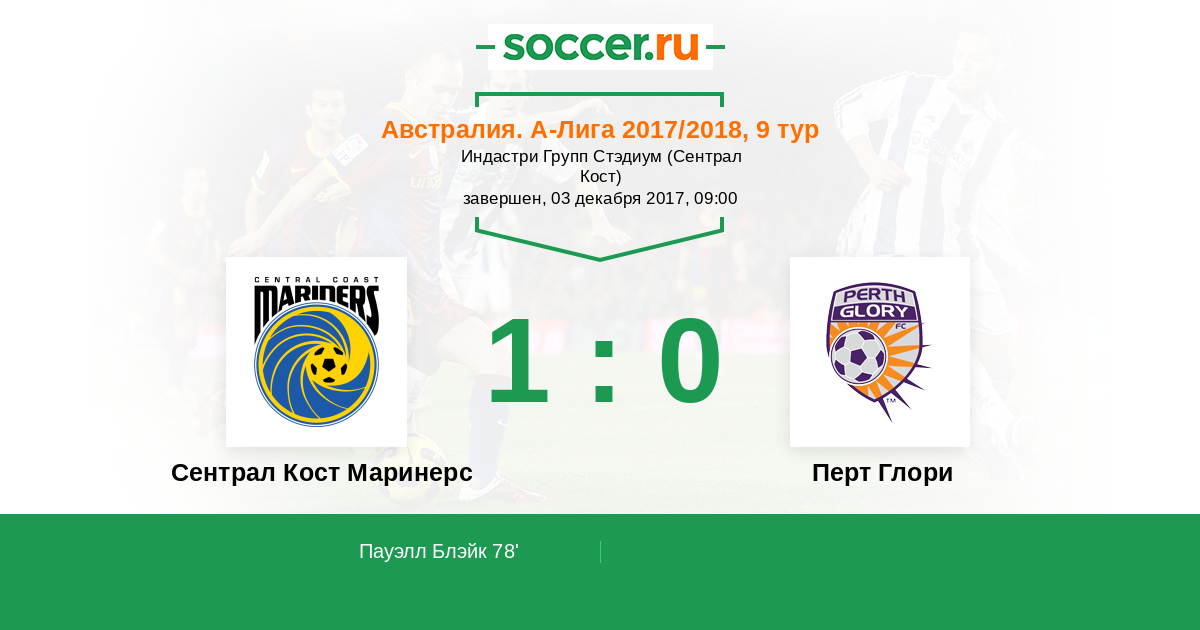 Сентрал Кост Маринерс - Перт Глори: обзор матча 3 декабря 2017
