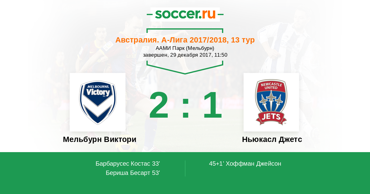 Мельбурн Виктори - Ньюкасл Джетс: обзор матча 29 декабря 2017