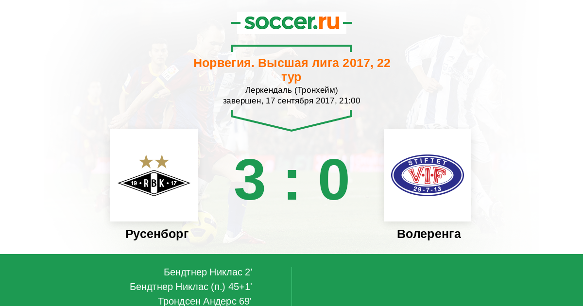 Русенборг - Волеренга: обзор матча 17 сентября 2017