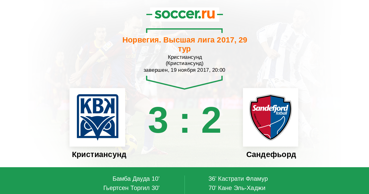 Кристиансунд - Сандефьорд: обзор матча 19 ноября 2017