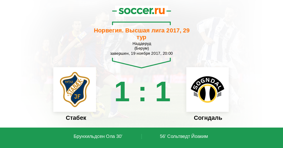 Стабек - Согндаль: обзор матча 19 ноября 2017