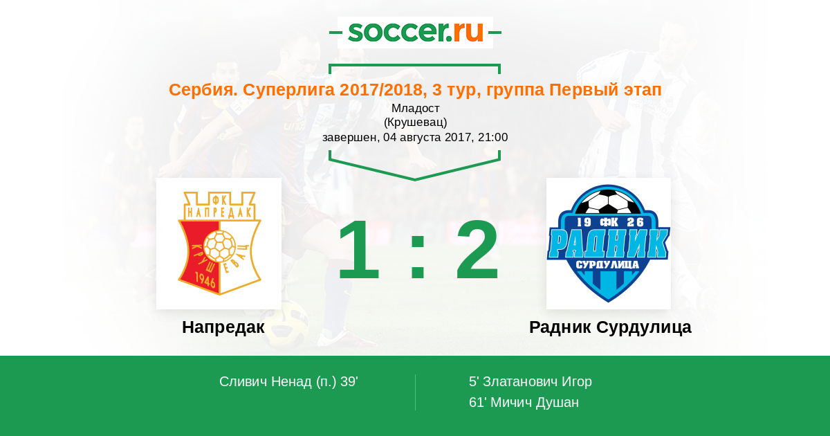 Напредак - Радник Сурдулица: обзор матча 4 августа 2017