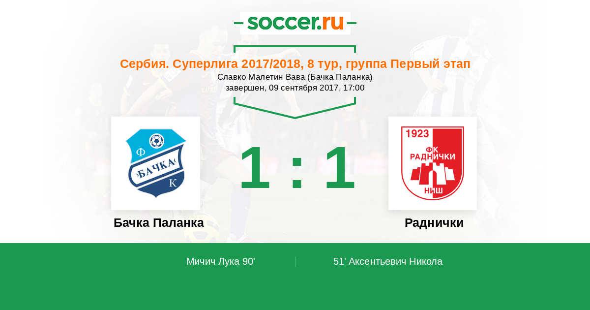 Бачка Паланка - Раднички: обзор матча 9 сентября 2017