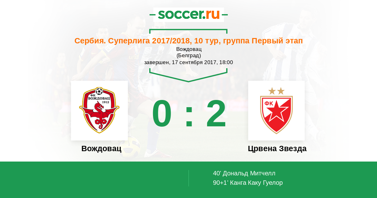 Вождовац - Црвена Звезда: обзор матча 17 сентября 2017