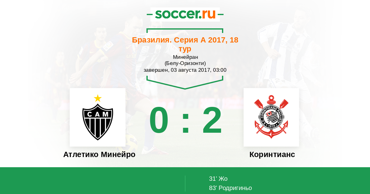 Атлетико Минейро - Коринтианс: обзор матча 3 августа 2017