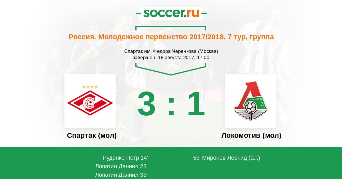 Спартак (мол) - Локомотив (мол): обзор матча 18 августа 2017