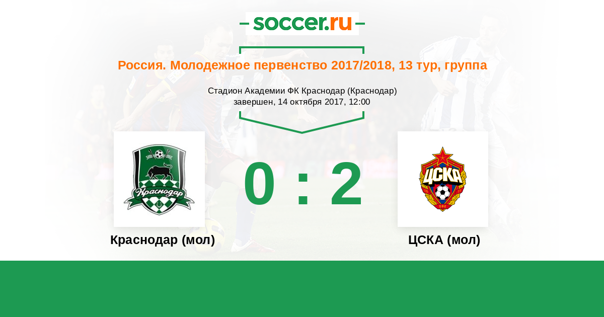 Краснодар (мол) - ЦСКА (мол): обзор матча 14 октября 2017