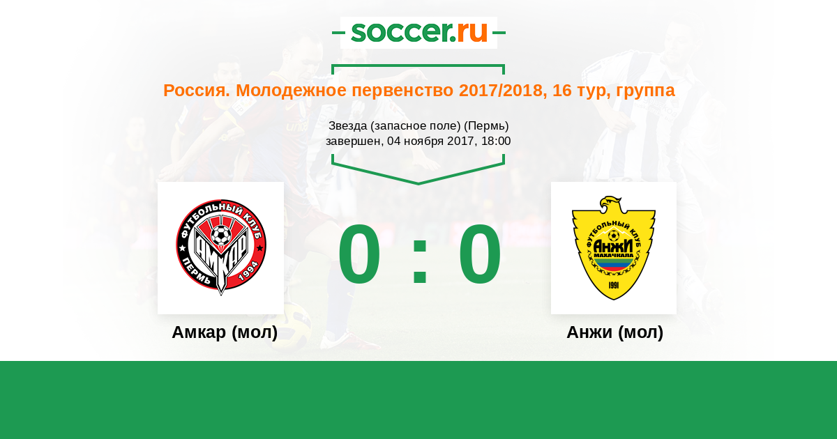 Амкар (мол) - Анжи (мол): обзор матча 4 ноября 2017