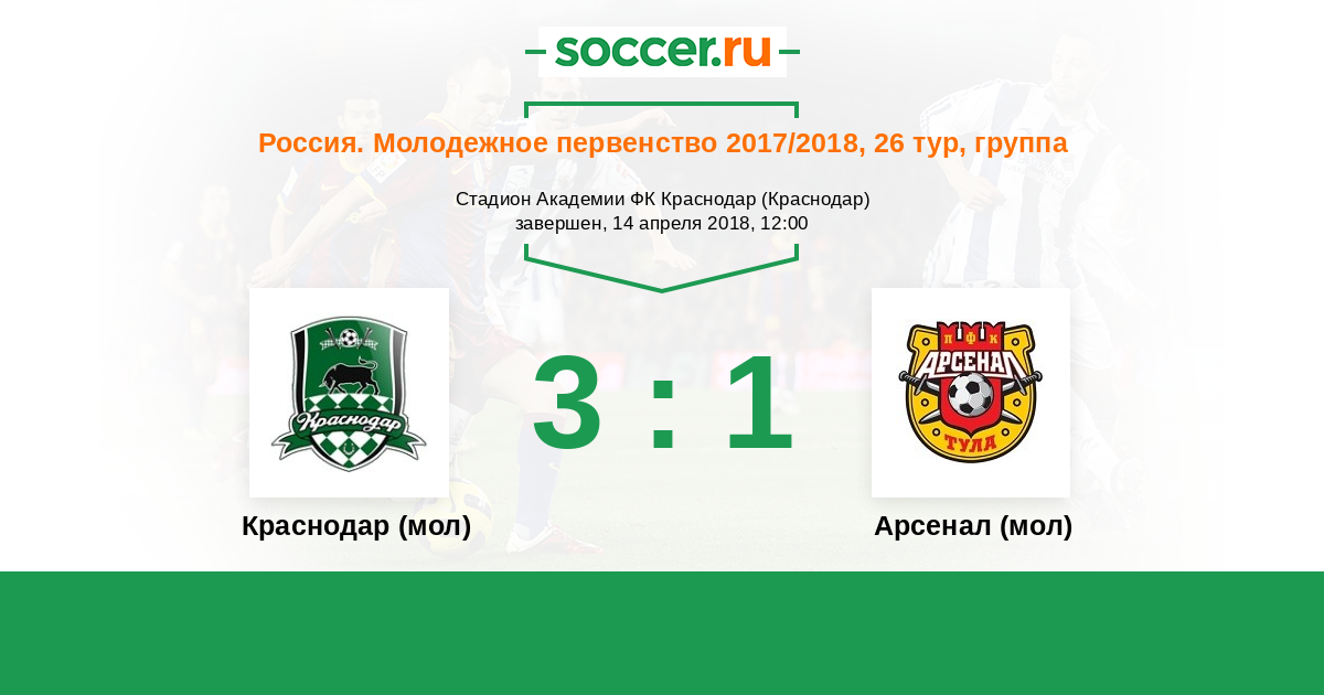 Краснодар (мол) - Арсенал (мол): обзор матча 14 апреля 2018