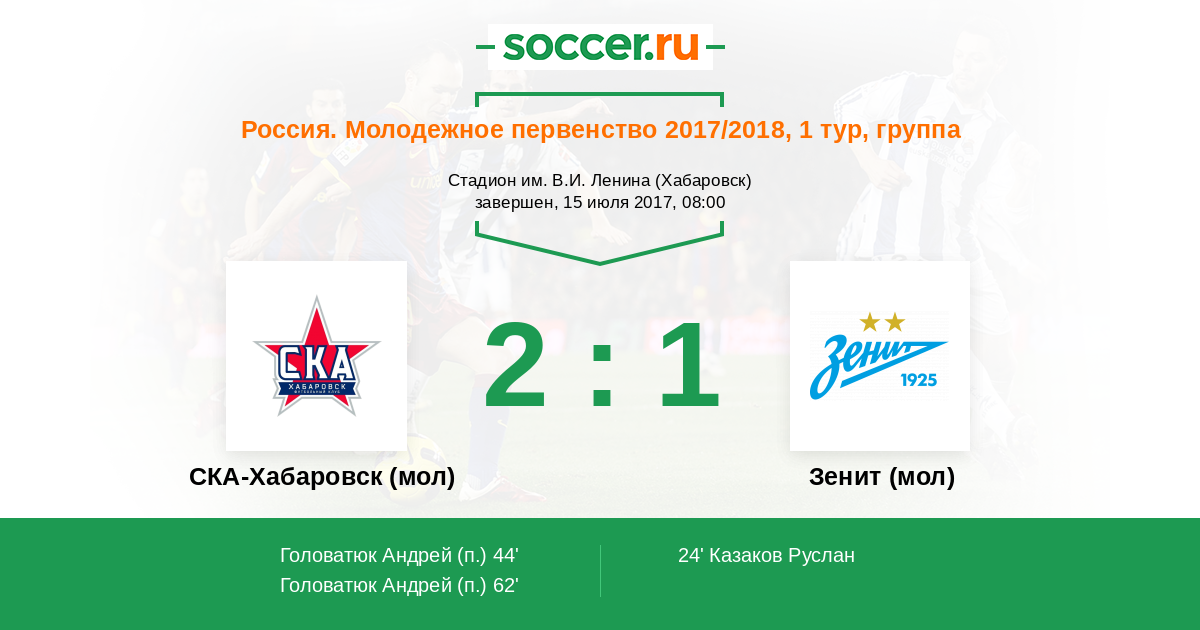 СКА-Хабаровск (мол) - Зенит (мол): обзор матча 15 июля 2017
