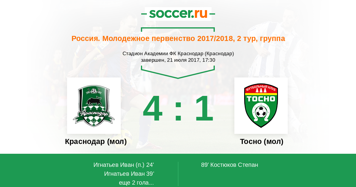 Краснодар (мол) - Тосно (мол): обзор матча 21 июля 2017