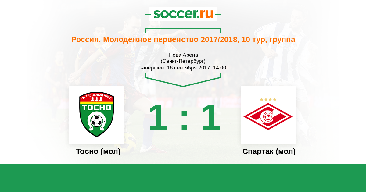 Тосно (мол) - Спартак (мол): обзор матча 16 сентября 2017