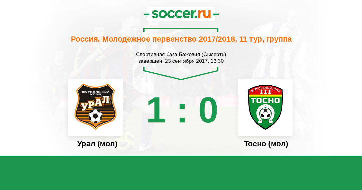 Урал (мол) - Тосно (мол): обзор матча 23 сентября 2017