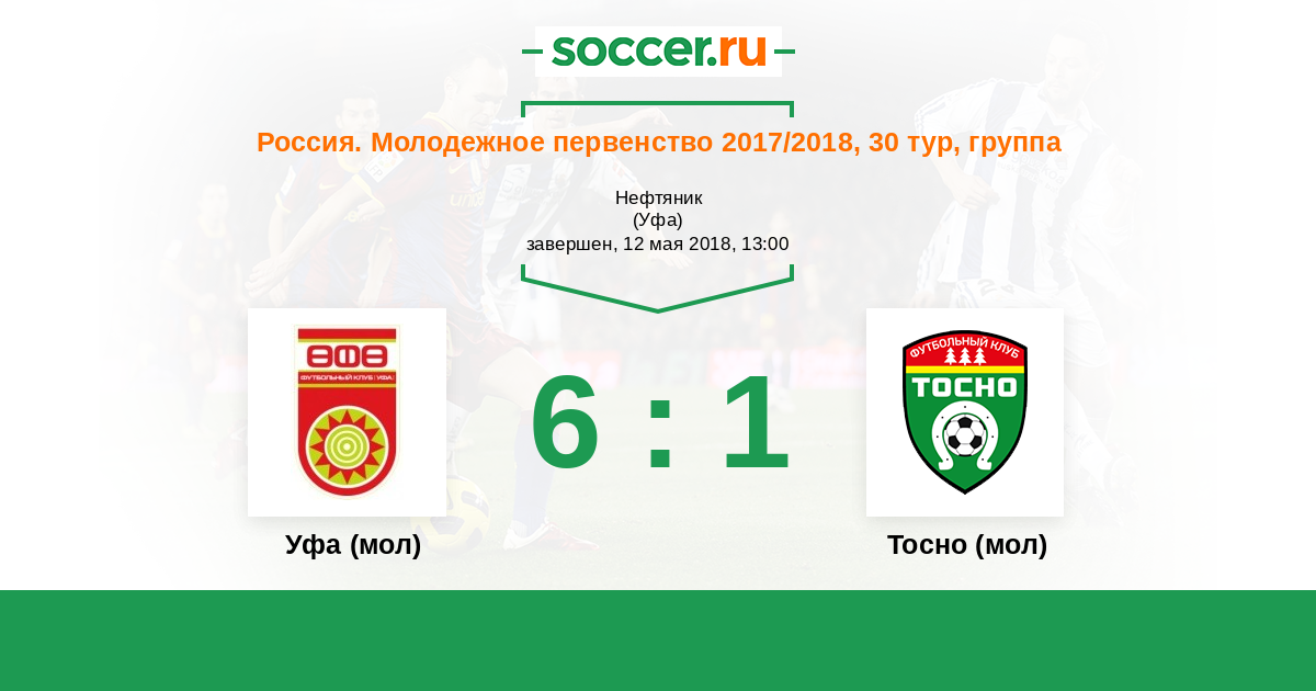 Уфа (мол) - Тосно (мол): обзор матча 12 мая 2018