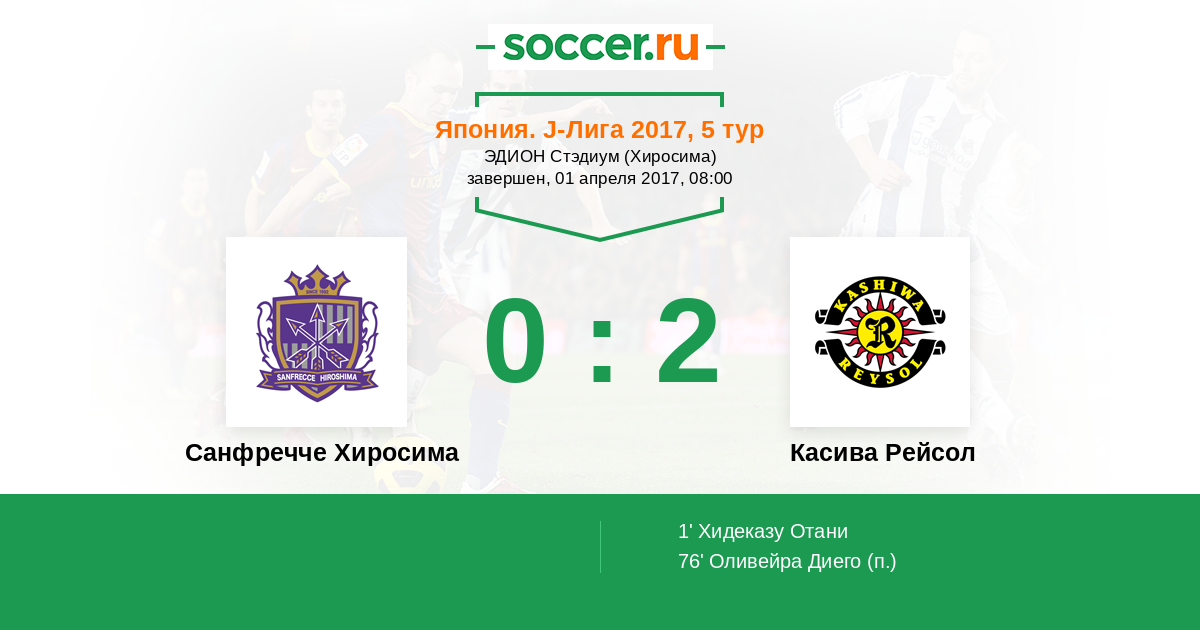 Санфречче Хиросима - Касива Рейсол: обзор матча 1 апреля 2017