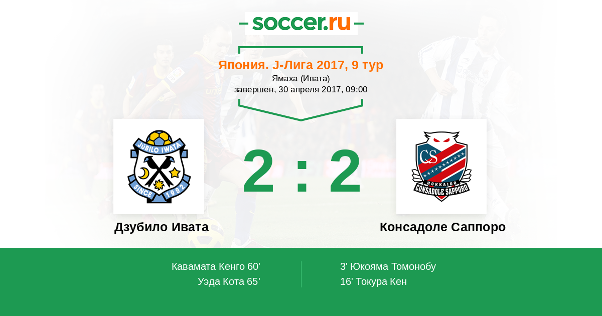 Дзубило Ивата - Консадоле Саппоро: обзор матча 30 апреля 2017