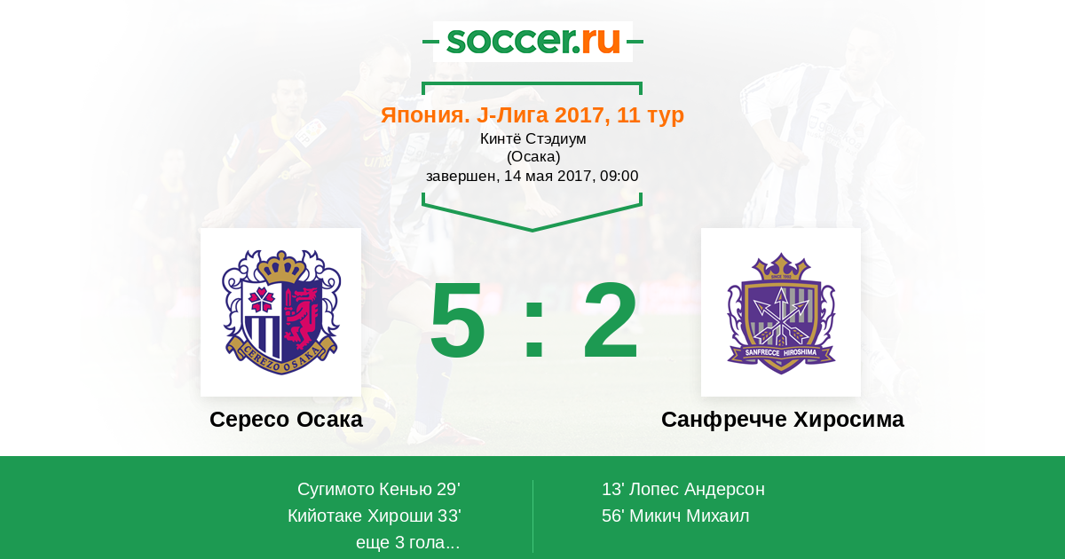 Сересо Осака - Санфречче Хиросима: обзор матча 14 мая 2017