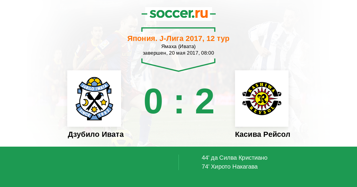 Дзубило Ивата - Касива Рейсол: обзор матча 20 мая 2017