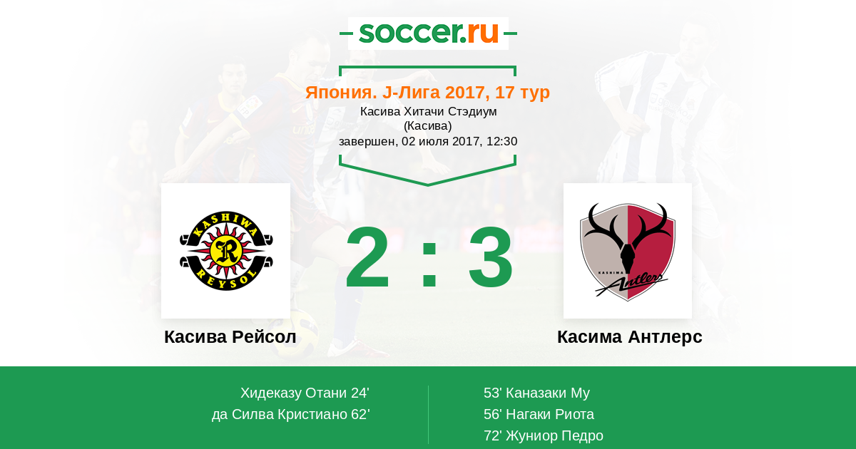 Касива Рейсол - Касима Антлерс: обзор матча 2 июля 2017