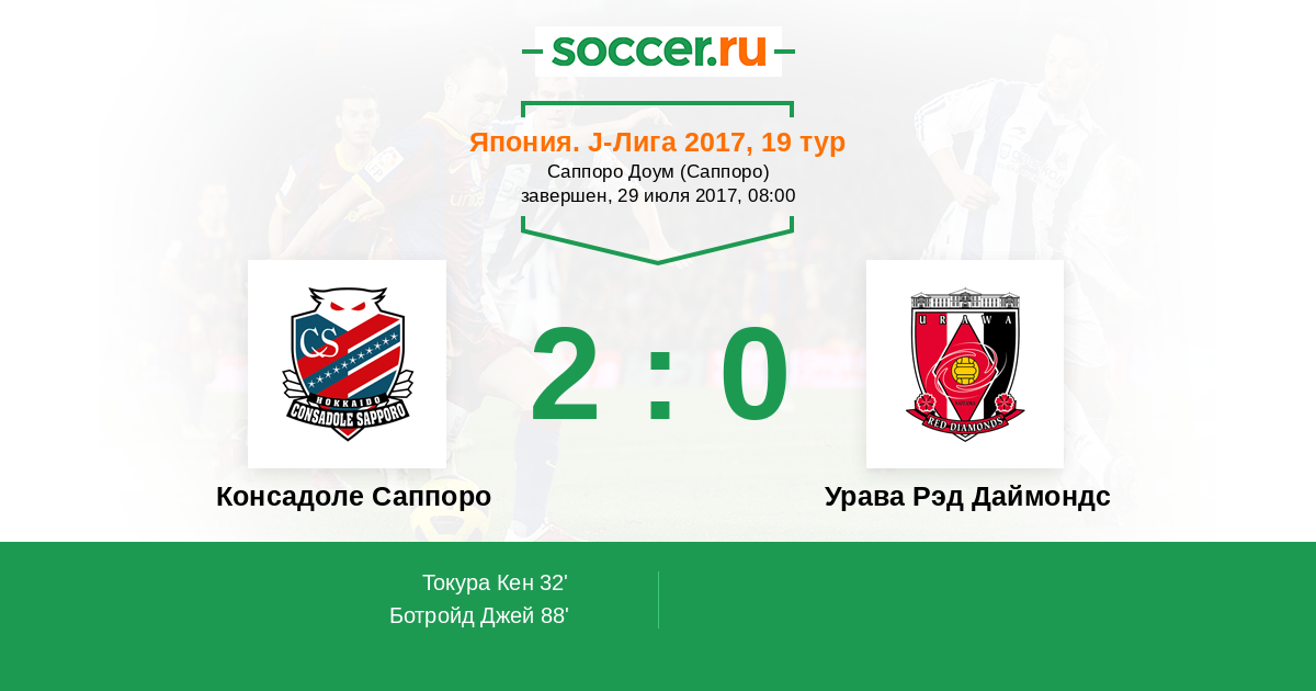Консадоле Саппоро - Урава Рэд Даймондс: обзор матча 29 июля 2017