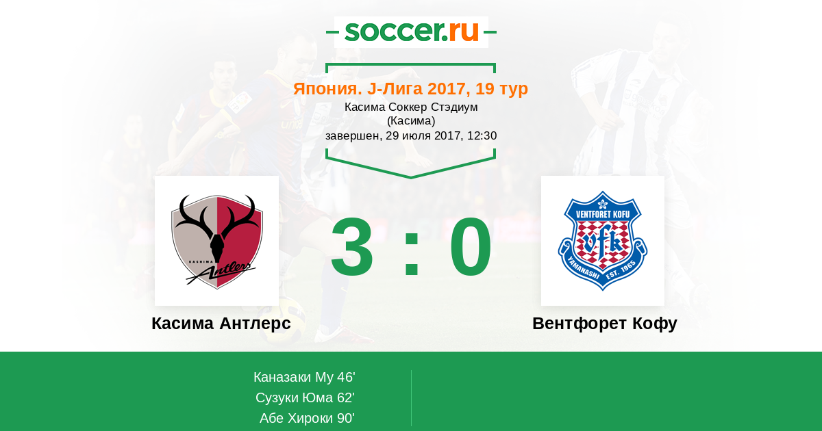 Касима Антлерс - Вентфорет Кофу: обзор матча 29 июля 2017
