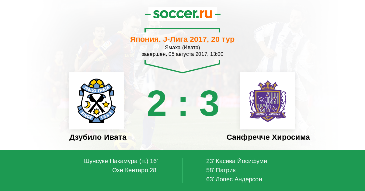 Дзубило Ивата - Санфречче Хиросима: обзор матча 5 августа 2017