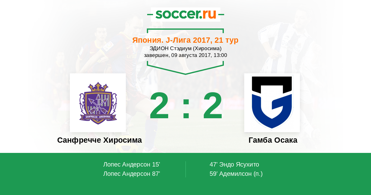 Санфречче Хиросима - Гамба Осака: обзор матча 9 августа 2017