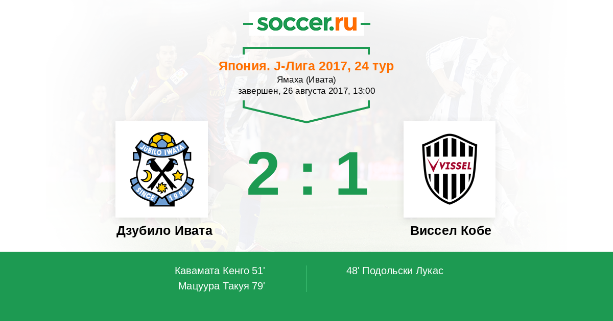 Дзубило Ивата - Виссел Кобе: обзор матча 26 августа 2017