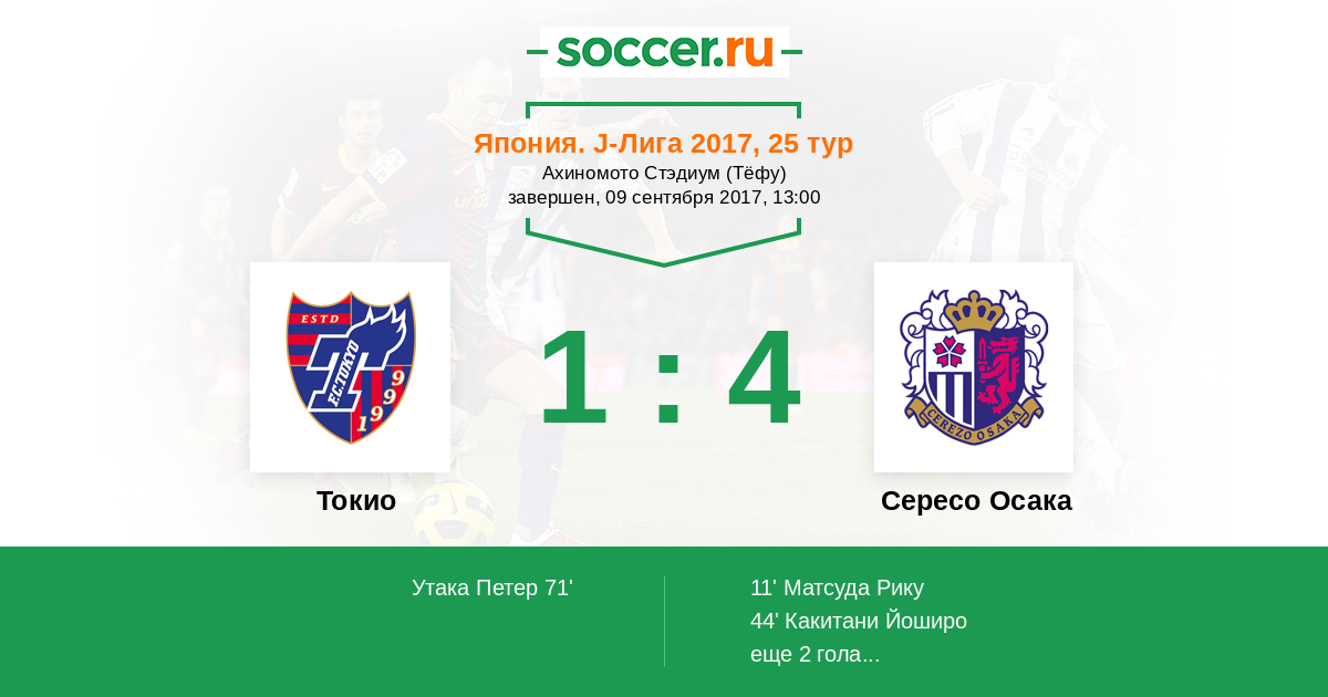 Токио - Сересо Осака: обзор матча 9 сентября 2017