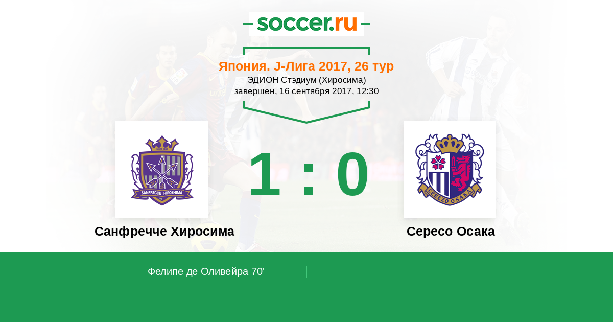 Санфречче Хиросима - Сересо Осака: обзор матча 16 сентября 2017