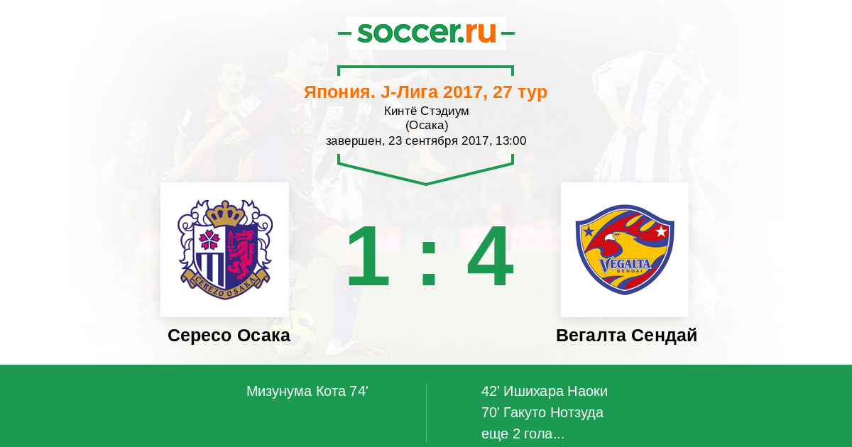 Сересо Осака - Вегалта Сендай: обзор матча 23 сентября 2017