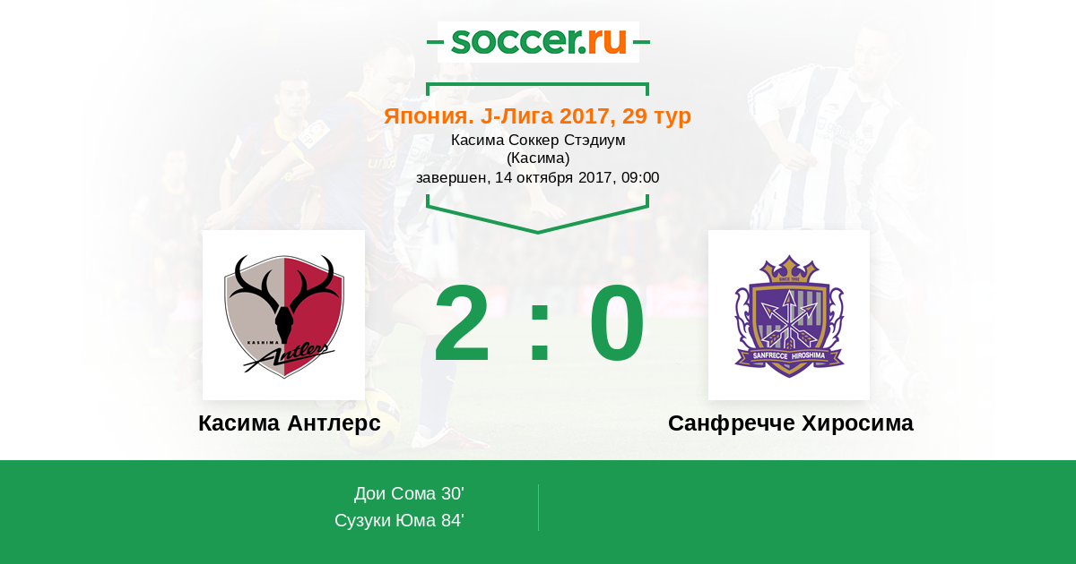 Касима Антлерс - Санфречче Хиросима: обзор матча 14 октября 2017