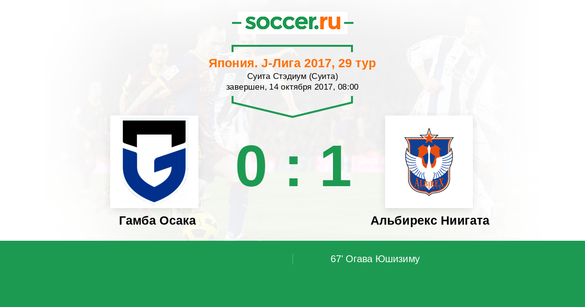 Гамба Осака - Альбирекс Ниигата: обзор матча 14 октября 2017