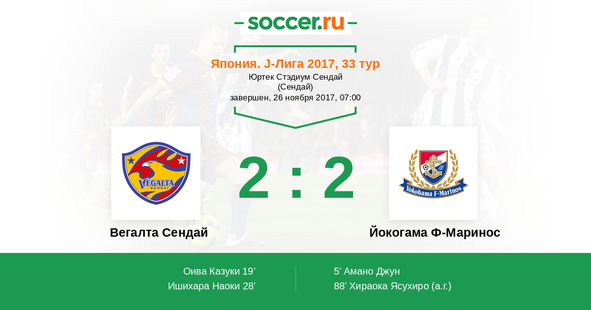 Вегалта Сендай - Йокогама Ф-Маринос: обзор матча 26 ноября 2017