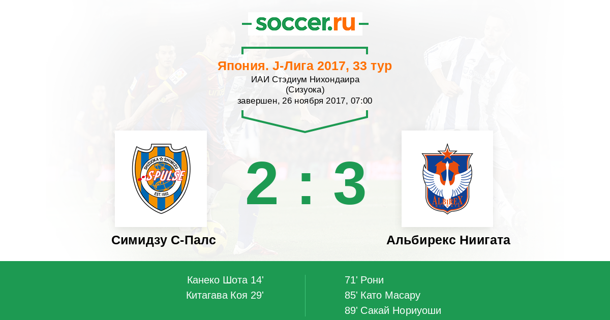 Симидзу С-Палс - Альбирекс Ниигата: обзор матча 26 ноября 2017