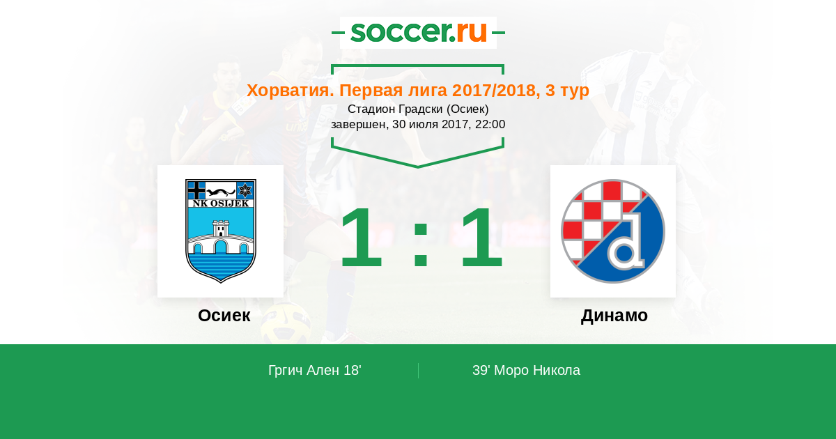 Осиек - Динамо: обзор матча 30 июля 2017