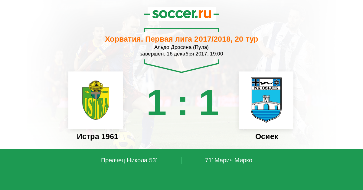 Истра 1961 - Осиек: обзор матча 16 декабря 2017