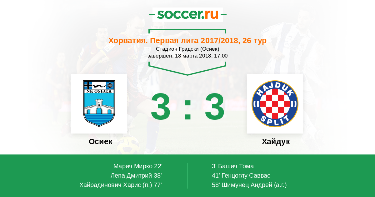 Осиек - Хайдук: обзор матча 18 марта 2018