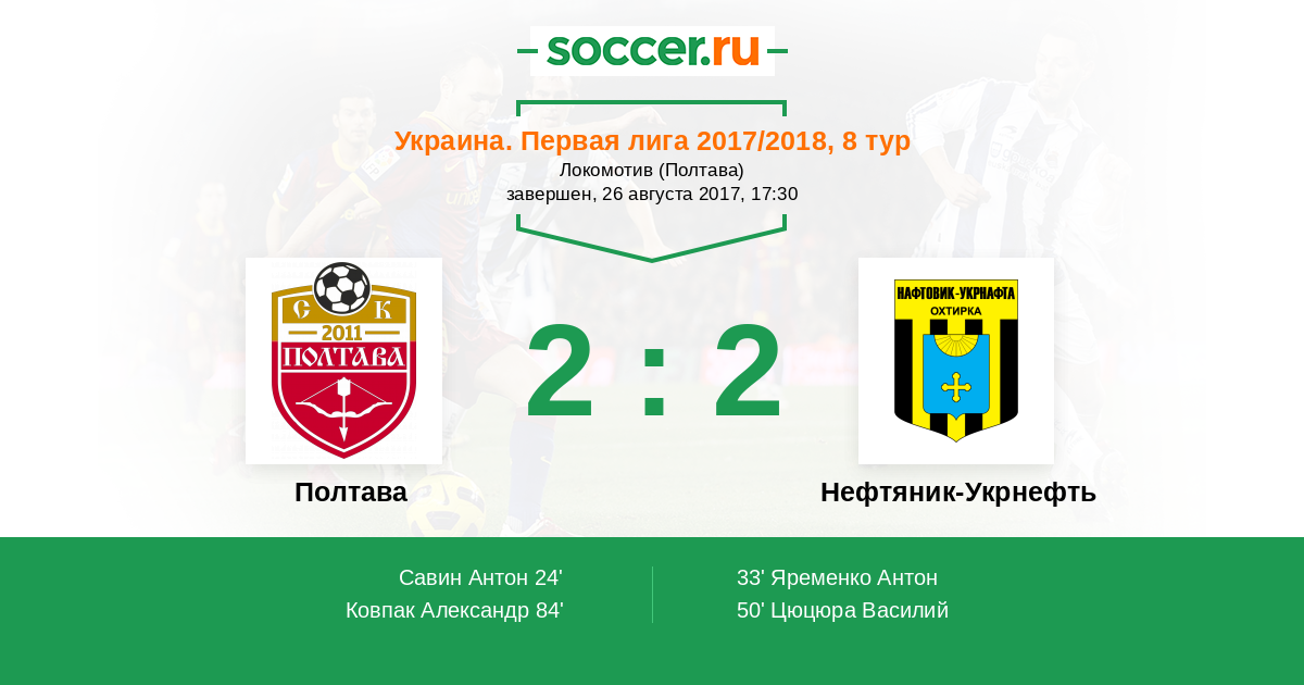 Полтава - Нефтяник-Укрнефть: обзор матча 26 августа 2017
