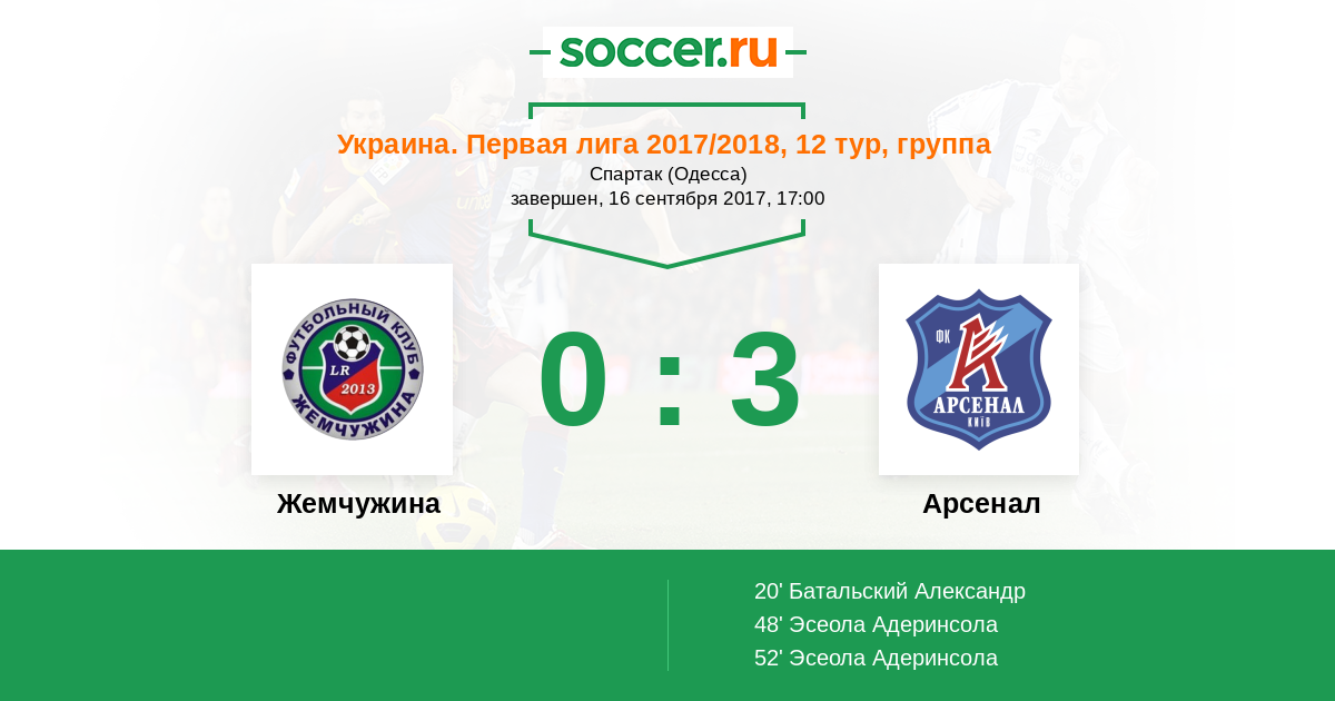 Жемчужина - Арсенал: обзор матча 16 сентября 2017