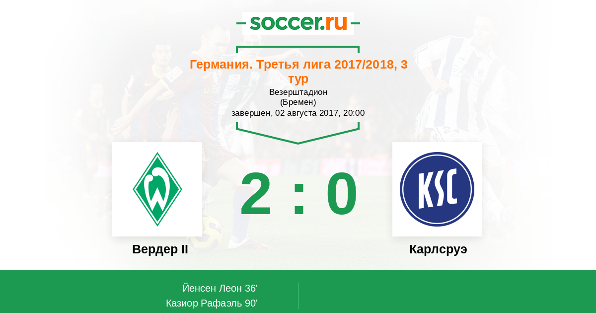 Вердер II - Карлсруэ: обзор матча 2 августа 2017