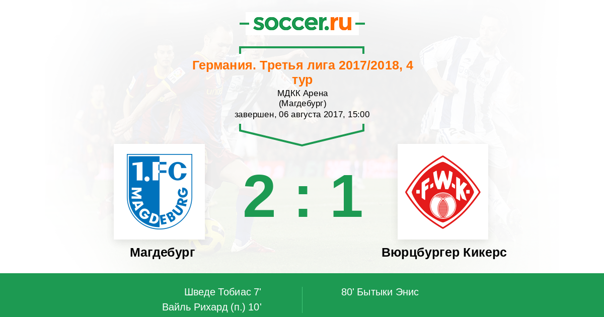 Магдебург - Вюрцбургер Кикерс: обзор матча 6 августа 2017